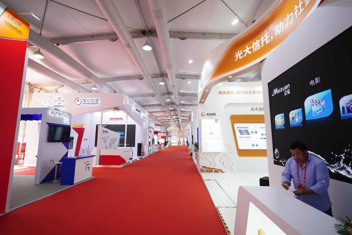 服贸会金融服务专题展展览面积达6555平方米,分为国家金融管理中心展区、金融业对外开放展区、金融业支持全球服务贸易展区、未来金融与智能金融展区、全球财富管理展区五大展区。各大展区内,工作人员在为布展做着最后的准备,多媒体大屏、金融科技设备、互动区与洽谈区成为每个展位的“标配”。